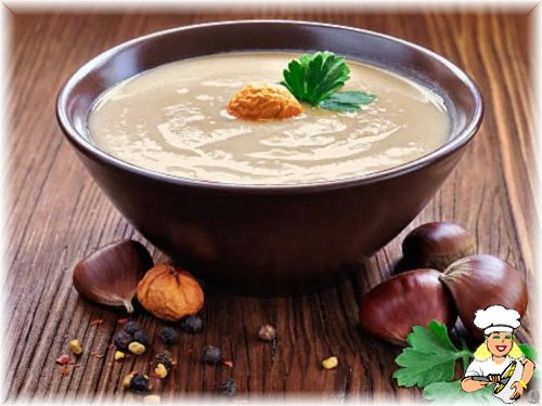 Derin bir tencerenin içinde bir yemek kaşığı tereyağını eritiyoruz ve doğranmış soğanları pembeleşene kadar kavuruyoruz. Üzerine, önceden kabukları soyulmuş kestaneleri ilave ediyoruz ve kavurmaya devam ediyoruz. Üzerine 1 litre kaynar su ile tuz ve karabiber ekliyoruz. Tencerenin kapağını kapatıp ağır ateşte 15-20 dakika kaynatıyoruz. Üzerine krema ilave ediyoruz ve kaynatıyoruz. Çorbayı, blender'dan çekerek servis ediyoruz.