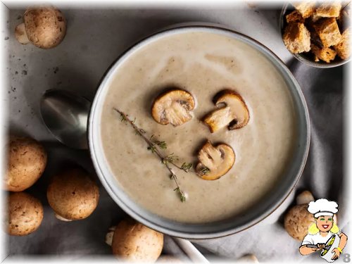 Beyaz mantarları temizleyip yıkadıktan sonra saplarıyla birlikte istediğiniz büyüklükte doğrayın. Çorba tencerenizde tereyağını eritin ve mantarları da ilave ederek kavurun. İnce kıyılmış sarımsağı da mantarlara ilave edip kavurun. Unu da ilave ettikten sonra kavurmaya devam edin. Tencereye 4 su bardağı içme suyunu ekleyin ve karıştırarak pişirin. Kaynadığında ocağı kısın ve krema, tuz ve karabiberi ekleyip 10 dakika daha pişirin. Servis sırasında maydanoz yaprakları ile süsleyin.