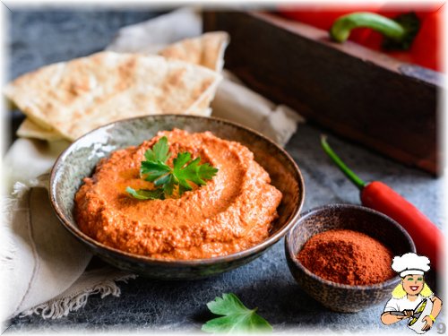Kurutulmuş biberleri sıcak suda haşlayıp süzün. Kalan malzemelerle birlikte mutfak robotunda macun kıvamına gelene dek iyice ezin. Çok az miktarda su ve gerekirse biraz daha zeytinyağı ekleyip servis yapacağınız kaplara paylaştırın. İsteğe göre hazır yufkadan fırında kızartılmış kıtırlar veya yine fırında kızartılmış lavaş ekmekleri ile servis yapabilirsiniz.