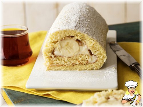 Bir kapta yumurta ve şekeri iyice çırpın, un ve limon kabuğu rendesi ilave edip karıştırmaya devam edin. Hemen yağlı kağıt serilmiş fırın tepsisine 1 santim kalınlığında yayın. Orta ısılı fırında pişirin. Daha sonra fırından çıkarttığınız keki sıcakken tepsiden kağıdı ile birlikte alın. Uzun kenarı boyunca rulo yapın, soğuyunca ruloyu açın içine krema sürün, kabukları soyulmuş olan muzu rulonun başına koyun ve kağıtsız olarak tekrar rulo yapın, rulo üzerine krema sürün, muz dilimleri ve krema ile süsleyin.