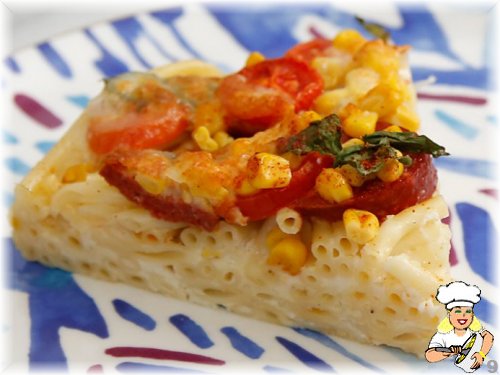 Kiraz domatesler dörde bölünür. Bezelye süzülüp yıkanır. Havuçlar küp şeklinde doğranır. Sosisler dilimlenir. Közlenmiş biberler şeritler halinde dilimlenir. Peynirler rendelenerek bir kısmı bir kâseye ayrılır. Bir kâsede 3 yumurta ve süt çırpılır. Paketteki pişirme önerisine göre haşlanıp süzülen Nuhun Ankara İnce Uzun makarna derin bir kâseye alınır, peynirin kalanı ve diğer malzemeler eklenerek karıştırılır. Fırın tepsisi yağlanır ve karışım tepsiye dökülür. Daha önceden ayrılan rendelenmiş peynir üzerine serpilir. Bir kâsede 3 yumurta ve süt de çırpılarak üzerine dökülür. Önceden 220 C ısıtılmış fırında üstü kızarana kadar pişirilir ve dilimlenerek servis yapılır.