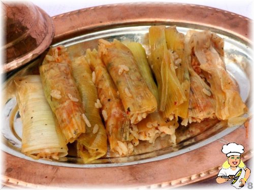 Pırasalar 4 santim uzunluğunda doğranır, az su ile hafif haşlanır ve tek tarafından merkeze kadar yarılarak yapraklarına ayrılır.