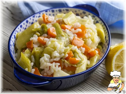 Soğanlar sotelenince, (verev kesilen havuçlar ilave edilir. Havuçlar 1-2 dakika piştikten sonra, )pırasa ile pirinçler eklenir.