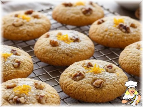 Fırınınızı l60°C'ye getirip ısıtın. Portakal şekerlemesini bir bıçakla 2 mm.'lik küçük parçalara ayırın. Ceviz içini robotunuzun parçalayıcısından geçirerek ince çekin. Portakal şekerlemesi parçalarını bir kaba koyup tozşeker ve ceviz içi ile karıştırın.