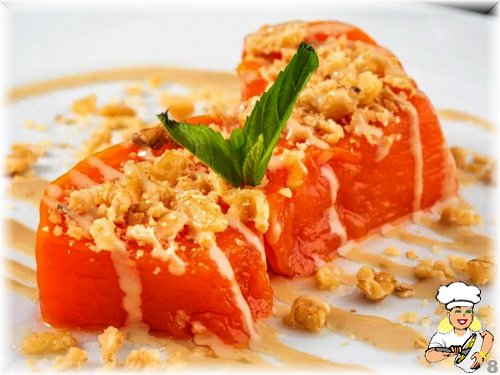 Kabak tatlısını ceviz, tahin ve kaymak gibi malzemelerle servis edebilirsiniz.