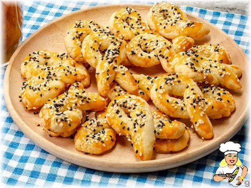 Bir kaba yoğurda konmuş karbonat, erimiş tereyağı, sıvı yağ, 1 yumurta, peynir ve tuz konup karıştırılır. Un ilave edilip yoğurulur. Hamur bir parmak kalınlığında açılır. Karelere kesilir. Evvela yumurtaya daha sonra susam ve kırmızı bibere bulanıp yağlanmış tepsiye dizilir. Kızgın fırına verilir.