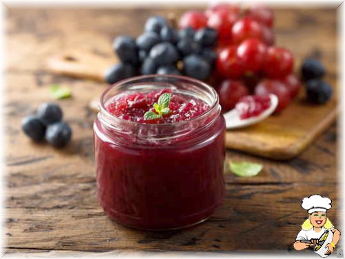 Not: Üzüm reçelinin rengi, kullandığınız üzümün cinsine, olgunluğuna, tencerenin cinsine (bakır yada pirinç olursa reçel yeşil olur) ve şeker eklendikten sonra pişirilme süresine göre değişir (ne kadar uzun süre pişirilirse, rengi o kadar koyu olur). Mürver çiçeği bulabilirseniz, 20 kadar çiçeği bir tülbente sarıp, birlikte pişirmeniz, reçele çok güzel bir tad verir (mürver çiçekleri, şeker eklenmeden çıkarılmalıdır).